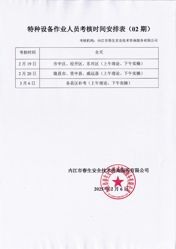 2025年春生公司第3期特種設備作業(yè)人員考核通知
