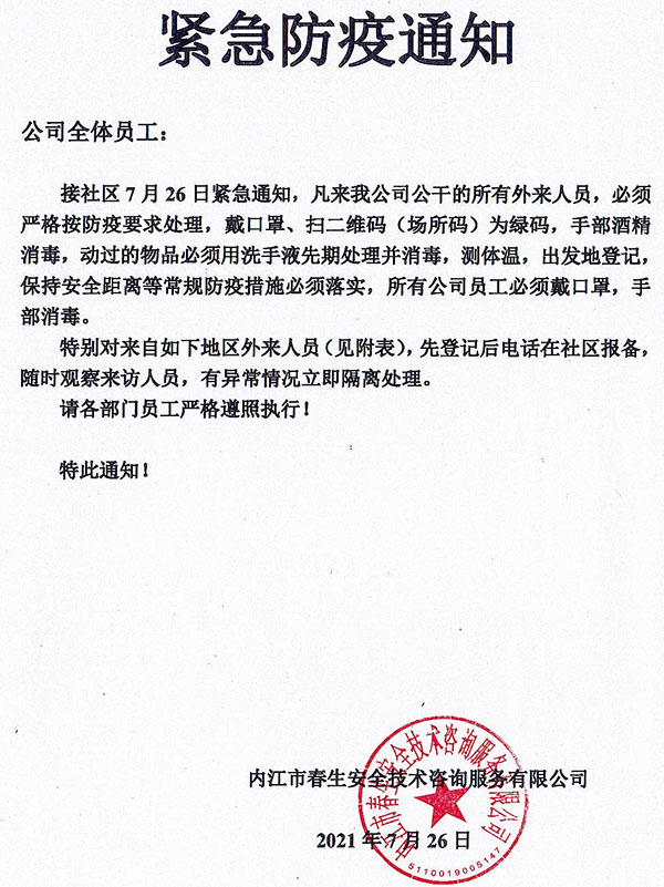 疫情防控緊急通知