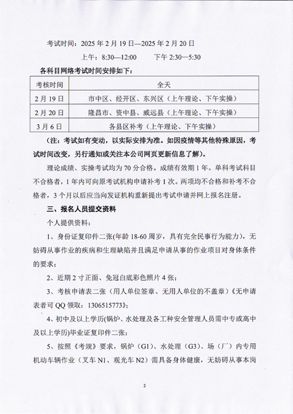 2025年春生公司第2期特種設備作業(yè)人員考核通知